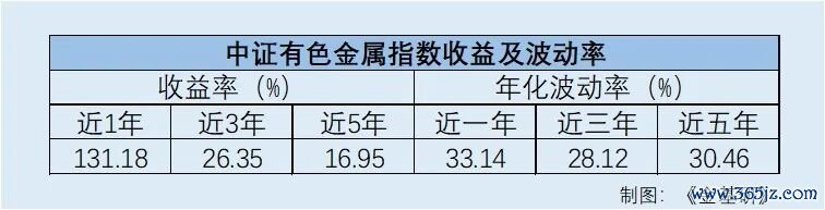 此外,中证有色金属指数还展现出典型的高弹性,年化波动率近1年、近3年、近5年年化波动率分别为33.14%、28.12%、30.46%。