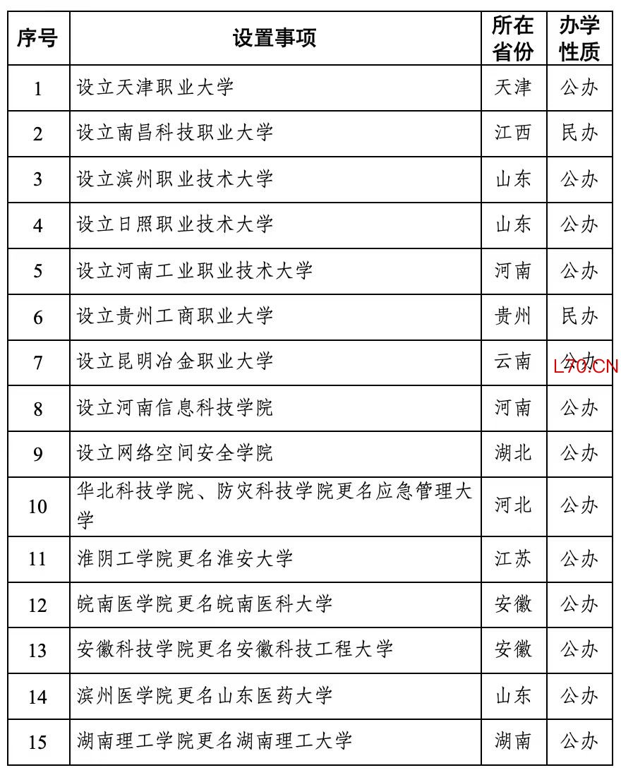 教育部:拟设15所本科高等学校